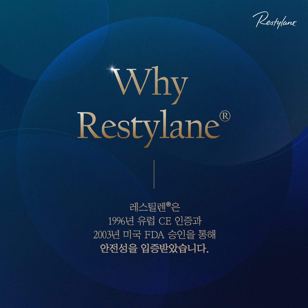 레스틸렌®은 1996년 유럽 CE 인증과 2003년 미국 FDA 승인을 통해, 안전성을 입증받은 필러입니다.